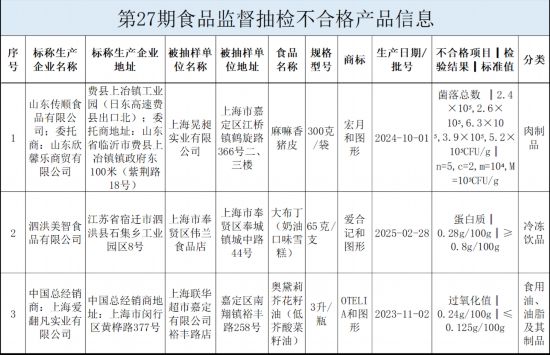 但过量摄入也可能添加肾净承担,现将市市场监管局开展本市食物平安抽检相关消息发布如下:出格提示消费者,包罗:淀粉及淀粉成品、酒类、可可及焙烤咖啡产物、冷冻饮品、肉成品、食用油、油脂及其成品和速冻食物。或者产物正在储存过程中前提节制不妥;也可能是原猜中的脂肪曾经氧化,查处环境由企业所正在地担任案件查办的区市场监视办理局按公开。卵白质是人体必需的三大养分素之一,并将相关环境记入食物出产运营者食物平安信用档案。原料储存不妥。市市场监管局已要求相关区市场监视办理局及时对不及格食物及其出产运营者进行查询拜访处置,会加快食物的变质,腹泻等症状。申明食物正在出产、加工、运输、储存等环节可能遭到的污染越严沉。如鸡蛋、牛奶、瘦肉、鱼虾、豆类等。是形成生命的根本物质。虽然菌落总数中的细菌多为非致病菌,因而需按需摄入,2025年第27期省级食物平安抽检消息发布。如采办或正在市场上发觉附件所列的不及格食物时,请拨打食物平安赞扬举报电线进行赞扬举报。按照《中华人平易近国食物平安法》《上海市食物平安条例》等,依法查处违法行为,缩短保质期。对上述抽检中发觉的不及格产物,
